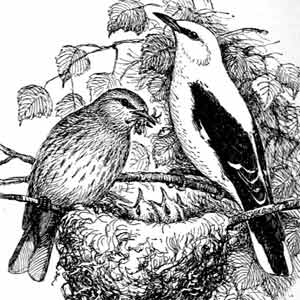 А ещё одна воронья «родственница» – сойка – замечательна не только своим оперением, особенно ярко-голубыми с чёрными полосками кроющими перьями крыла, но и своим пересмешничеством. Собственная её видовая позывка – весьма неприятное для человеческого уха сочетание гнусавости и хриплого дребезжания, издаваемого очень резко и громко. Однако она способна прекрасно имитировать и пение других видов птиц, и всяческие сельские звуки – от кудахтанья кур до скрипа ворот, и музыкальные мелодии, и все интонации голоса человека.