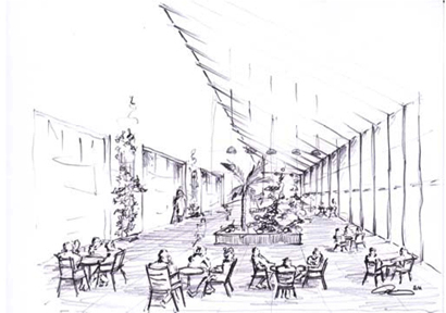 Dieser Treffpunkt ist bei den Bewohnern zu einer Wichtigen Kommunikationsstätte geworden. Ein Gemurmel hallt stets durch den Raum. Hier und da bilden sich in den Morgenstunden kleine Gruppen. Sie lachen über Witze, die ein Mitbewohner schon mehrmals erzählt hat.