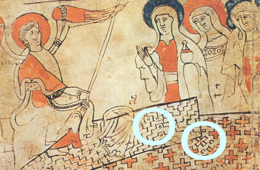 A detail of the Pray Codex with the highlighting of two supposed L-shaped holes
