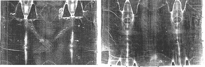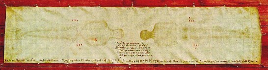 It could be that the burn marks had been produced with the Shroud folded in four, and the damage passed through all the sides. The origin of the burns is unknown - perhaps molten metal accidentally dripped -, but we know they are on the Cloth since before the A.D. 1532, when the Chapel of the Shroud in Chambery caught fire (see Chronology, A.D. 1532); in fact, these symmetrical holes are depicted on a printmaking made by Dürer in Chambery in A.D. 1516, reproducing for the first time the whole Shroud: