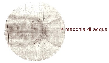 By the way: please note that the Man's face and head are divided and detached in the printmaking (as a result of the three-dimensional head); in fact, in A.D. 1516 there was not yet on the linen the water stain caused by 1532 Chambery fire extinction (see Chronology) which many people confuse, making a mistake, with the Man's nape.
