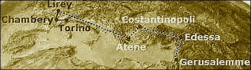 In 1204 A.D. a tragedy took place: the Byzantine Empire was sacked by the army of the Fourth Crusade, which was called by Pope Innocent III to reclaim Holy Land from Muslims, without achieving such purpose. On April 12th, Constantinople was conquered, with horrible massacres and awful looting of treasures and holy relics. If it's true that only the First Crusade had strong idealistic motivations, besides the usual economic and power reasons, before the 1204 events the Christians never reached a such level of cynical and bloody profiteering. Count Baldwin IX of Flanders was in charge of the abject expedition, and under his command the French knights William of Champlitte, Geoffrey of Villehardouin, Othon de La Roche (Duchy of Burgundy) and the Italian commanders Boniface of Montferrat and Enrico Dandolo (Doge of Venice) participated to the crusade. When the Latin Empire was finally established, the Byzantine's territories were apportioned between the winners, except for the Doge of Venice who was ninety years old and very ill. Count Baldwin of Flanders was crowned as Emperor Baldwin I in the cathedral of Constantinople, Hagia Sofia, with a lavish ceremony. William of Champlitte became Prince of Achaea; Geoffrey of Villehardouin Prince of Morea; Boniface of Montferrat King of Thessalonica. Finally, but his figure is the most important in our history, Othon de La Roche became Duke of Athens and Thebes. Meanwhile, the mandylion (or the Shroud?) was stolen during the looting from the church annexed to the imperial palace of Blachernae by unknowns. Was it hidden in Athens? We can presume it by reading the copy of a letter dated August 1st 1205, just after the sack of Constantinople, which was originally sent by Theodore Komnenos, related to the imperial family, to the Pope Innocent III (but we have no certain evidence on the existence of the original)24 ; in this paper, Theodore blamed crusaders to be predators of relics, and asked the Supreme Pontiff for the return of the Constantinople cloth, which he claimed to be kept in Athens by the Duke Othon de La Roche. Later, in A.D. 1208, the Duke of Athens and Thebes probably would have sent the shroud (again, the Shroud of Turin?) in his possession to his father Ponce II de La Roche-sur- Ognon and Ray; hence, from that year the cloth would have been in France guarded by the de La Roche family.