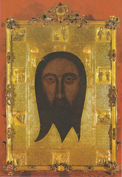 The mandylion was an image miraculously produced by Jesus as a gift to Abgar V, known as Ukama (“the Black”), King of Edessa from A.D. 13 to 50. Since he was suffering from leprosy, he sent messengers to Jerusalem during the Easter week for inviting the Nazarene to his court to be cured. Christ, who could not go due to the imminent crucifixion, healed King Abgar through the view of an icon, which delegates carried to the king. According to another version, the mandylion was a portrait painted in tempera by a man called Anania, who was sent to Jesus by Abgar V. Another legend says that Jesus, who was not satisfied with the Anania's work, dipped his fingers into the colors to modify the icon and make it identical to his face. However, Abgar V healed when he saw the image; and therefore he converted to Christianity, along with his son Ma’nu V (who was king for a short time after his father died). But Abgar's nephew Ma’nu VI, who took the throne in A.D. 57, reverted to paganism and started to persecute Christians. Even today, an icon painted in tempera with an egg-white base, which would be the one sent by Jesus to King Abgar, is venerated at the Genoese church of San Bartolomeo degli Armeni. Obviously, the Shroud is not a painting, and therefore the mandylion is not the Shroud. The one showed in Genoa is rather an ancient Byzantine icon inspired by the mandylion and probably produced in Edessa.