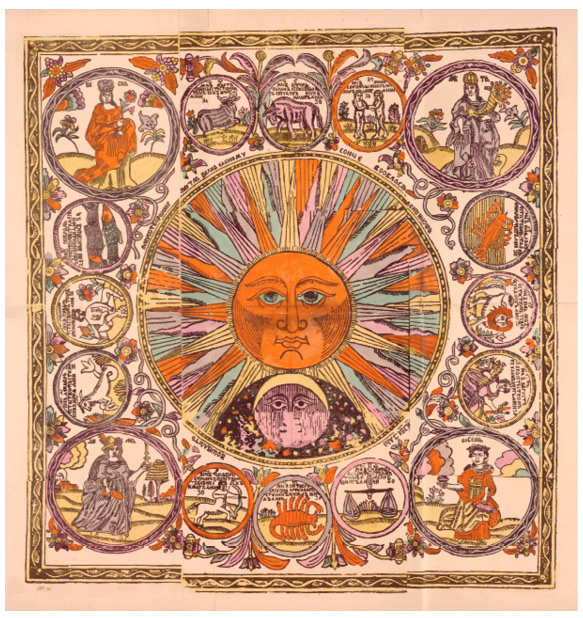Солнце со знаками зодиака. Лубок из книги «Русские народные картинки». Д. А. Ровинский, 1881 г.