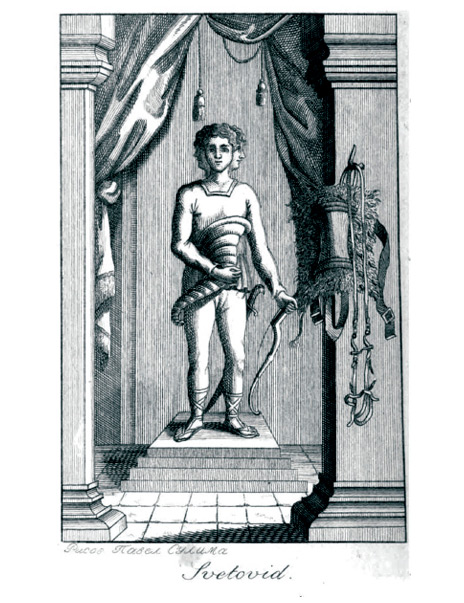 Святовид. Иллюстрация из книги А. С. Кайсарова «Мифология славянская и российская». Художник П. Сулима, 1804 г.