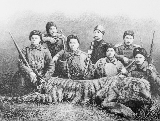 Таким способом солдаты сделали семь выстрелов, но тигр все-таки не уходил, и только восьмая пуля, угодив прямо в позвоночный столб, убила зверя наповал» (Пржевальский Н.М. Путешествие в Уссурийском крае. 1867–1869 гг. СПб., 1870).
