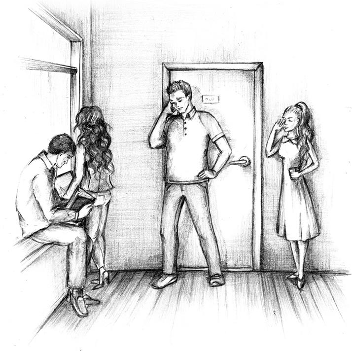 Все были заняты делом и не обращали внимания на студента, который метался от одной двери к другой, не понимая расположения аудиторий. Он явно впервые был в этом корпусе и поэтому растерялся. Отчаявшись найти нужный кабинет самостоятельно, молодой человек решил обратиться к местным: