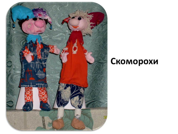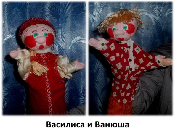 – Куклы: Ваня, Василиса, Сорока, Петрушка, Музыкант, Матрена Ивановна.