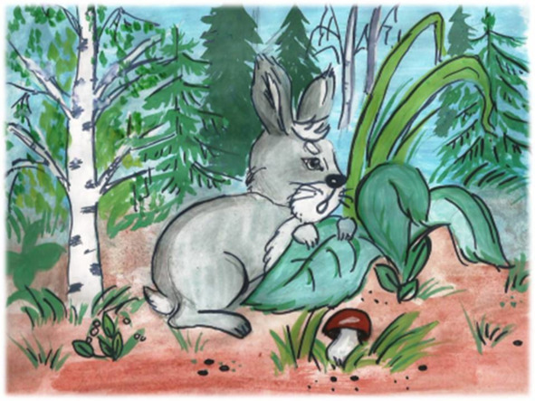 Услышал зайка слова девочек и думает: «Пропаду я здесь в лесу: настанет зима, травки не будет, придется веточки искать, а по следам меня хищные звери сразу найдут! Вот бы мне пойти жить к девочке с ее бабушкой. Стал бы я их огород караулить, от мышей да ворон защищать!»