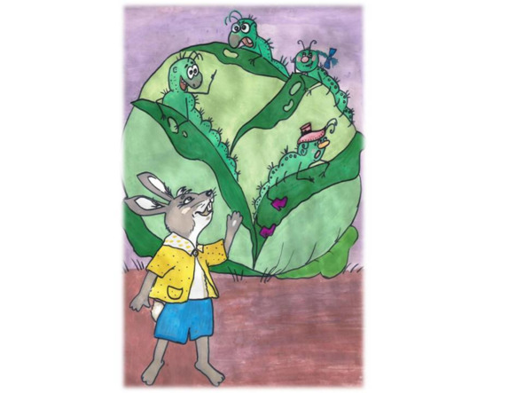 Гусеницы так удивились, что перестали жевать и стали выползать повыше, чтобы лучше разглядеть нарушителя их спокойствия. Одна из гусениц, очень важная и колючая дама, решилась заговорить с зайцем: