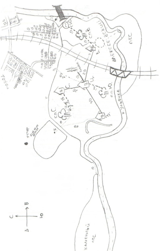 Алексеевский лес своей формой напоминал акустическую гитару. Железная дорога пересекала его в районе струнодержателя на широком корпусе, Центральный лагерь находился примерно там же, где у гитары резонаторное отверстие, а вытянутая вдоль реки полоса деревьев напоминала гриф. Ульянка делала пологую излучину в том же месте, где сужался корпус гитары.