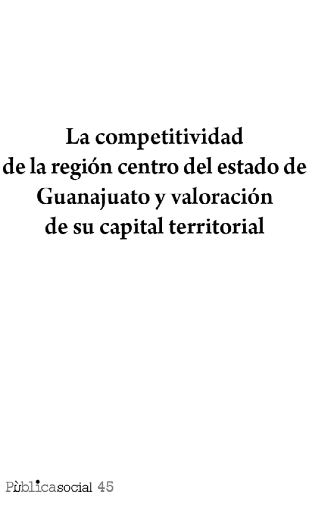 La competitividad de la región centro del estado de Guanajuato y valoración de su capital territorial