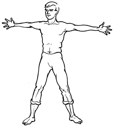 Первая особенность – подготовка рук. Я рекомендую своим пациентам перед выполнением пальминга встать, широко расставив ноги и раскинув руки в стороны, пальцы раздвинуть в виде веера. Мысленно получить заряд космической энергии, после чего ладони рук сцепить в замок и энергичными потираниями ладони об ладонь в течение нескольких секунд добиться потепления ладоней. Только после того, как вы ощутите тепло ладоней, можно приступить к пальмингу (рис. 5, 6).