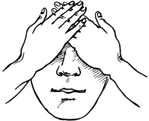 Человеку, который заслоняет свет ладонями, предлагаю занять свой разум воспоминаниями приятных сцен из прошлого. Но вспоминая, нужно быть осторожным, чтобы избежать чего-либо похожего на «умственное вглядывание». Фиксируясь на каком-либо образе, можно легко вызвать ответную фиксацию и неподвижность глаз. В этом нет ничего удивительного и непостижимого с точки зрения целостности человеческого организма. Чтобы избежать «умственного вглядывания», необходимо всегда, когда глаза прикрыты ладонями, вспоминать объекты и образы в движении. Поэтому своим пациентам я рекомендую представлять картины в динамике.