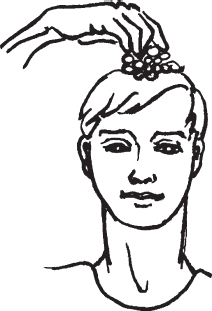 * Упражнение «Ожерелье на голове». Разместите на 10 минут ожерелье из бусин цитрина на голове на уровне верхнего энергетического центра – в том месте, где обычно у младенцев бывает родничок. Желтые лучи цитрина помогут устранить все энергетические блокировки в позвоночнике, восстановят движение спинномозговой жидкости. Соответственно, улучшится состояние внутренних органов (рис. 24).