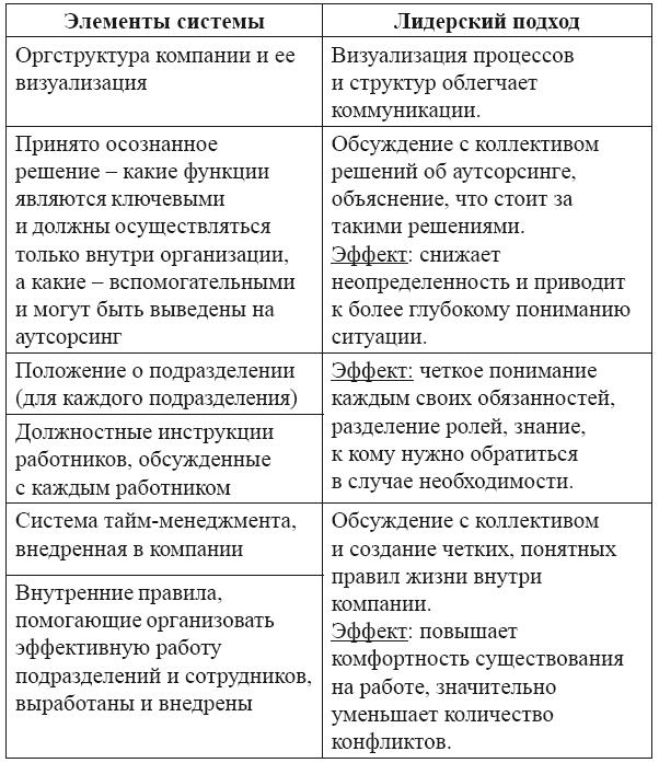 Чек-лист позволяет увидеть картину в целом, расставить приоритеты и определить направления дальнейшего совершенствования. Добавим краткое описание использования лидерского подхода для усиления каждого элемента функции.