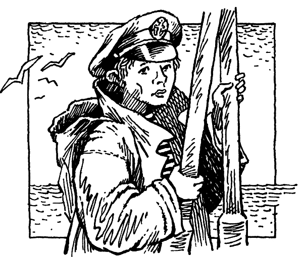 Я стал у ворот и долго поджидал, не пройдёт ли мимо какой-нибудь лейтенант или хотя бы рядовой красноармеец. Но, как назло, ни один военный не показывался на улице. Вот было мелькнули на другой стороне улицы какие-то чёрные шинели, я обрадовался, подумал, что это военные моряки, перебежал улицу и увидел, что это не моряки, а мальчишки-ремесленники. Прошёл высокий железнодорожник в очень красивой шинели с зелёными нашивками. Но и железнодорожник с его замечательной шинелью мне тоже был в эту минуту ни к чему.
