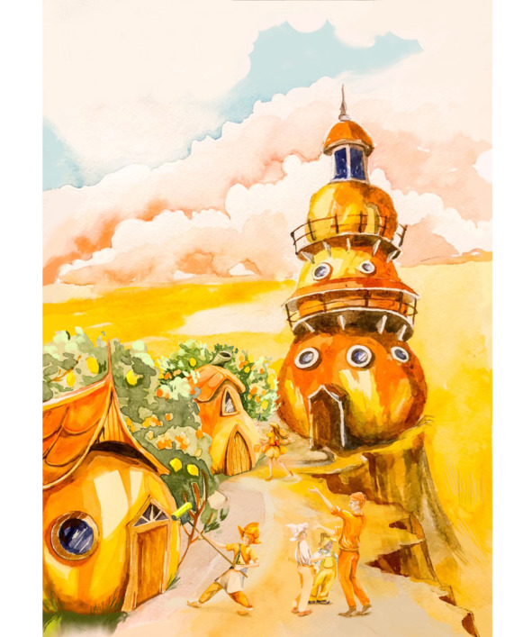 По дороге мальчик с интересом расспрашивал Оранжевого про всё, что видел. Если в Красном крае их путь лежал через леса и цветочные поля, то здесь их окружили фруктовые сады, где на деревьях россыпью висели плоды оранжевого цвета. В воздухе витал приятный лёгкий цитрусовый аромат.