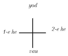 Наконец, третий способ изображения состоит в окружении Триады JOD-HE-VAU тонализирующей буквой – второй Не следующим образом: