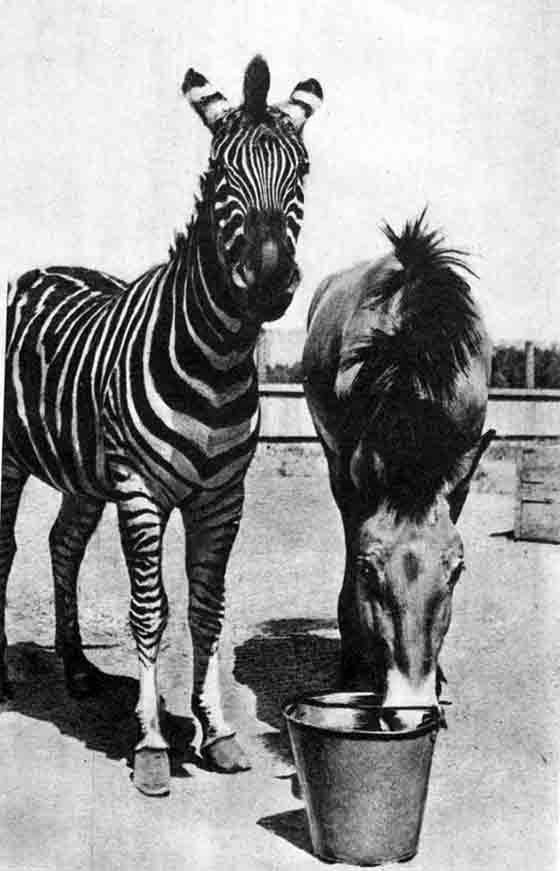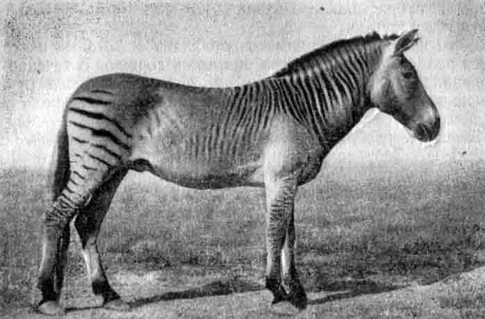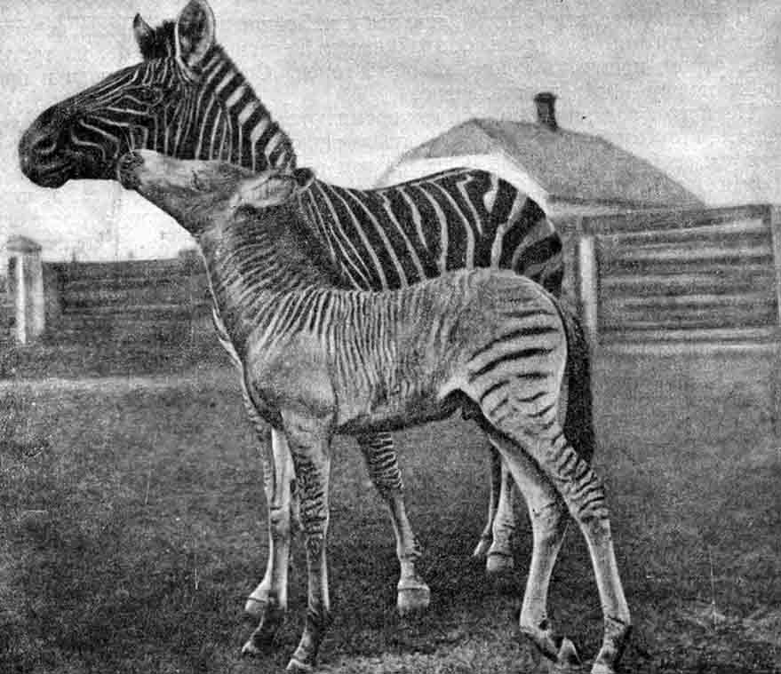 Один из асканийских зеброидов на фотографии 1930-х гг.: чрезвычайно могучее телосложение при очень компактных размерах