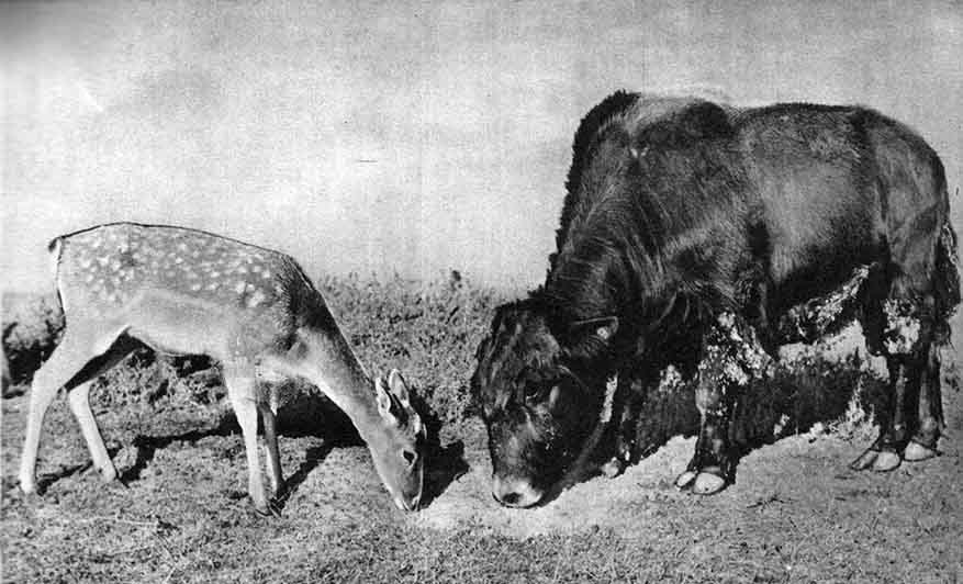 Оптимальный материал для скрещивания подобрали почти сразу – гаял. Это бык другого вида: собственно говоря, доместицированный подвид гаура, Bos frontalis. Давно одомашненный, но, как и як, еще не растерявший полудикой выносливости (местами гаялы даже успешно одичали, вернулись в джунгли). Гаял довольно близок к яку и по крови, так что можно было ожидать плодовитых помесей – и эти ожидания действительно оправдались… отчасти. Во всяком случае, результаты получились куда лучше, чем при попытках создать «тройной» гибрид между коровами яков и быками зубробизонов. Такие попытки в Аскании начали предпринимать сразу после похода через «Страну смерчей», в том же 1935 году, но, строго говоря, дело не дошло даже до стадии потомства первого поколения: гибридные якозубробизончики погибали еще в материнской утробе, губя при этом и мать.