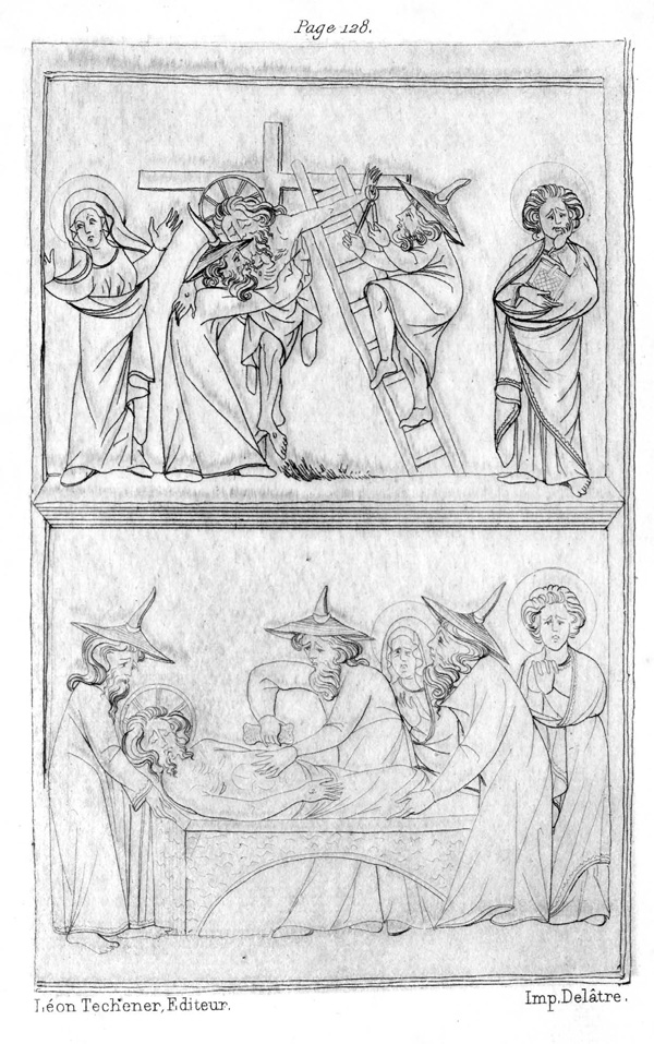 Иисус же на другой день после Своей смерти спустился в ад, дабы освободить добрых людей[113]; вслед затем Он воскрес, явился Марии Магдалине, Своим ученикам, еще и прочим иным. Многим мертвым, коих воззвал Он к жизни, дозволено было посетить ближних, до того как обретут место на Небесах. И вот среди Иудеев сделалось смятение, солдаты же, коим велено было охранять гробницу, устрашились быть призваны к ответу. Дабы избежать наказания, решили они схватить Никодима с Иосифом и умертвить их; а после, ежели спрошены будут, что они сделали с Иисусом, сговорились отвечать, что сии два Иудея приставлены были охранять Иисуса, только им и ведомо было, что произошло[114].