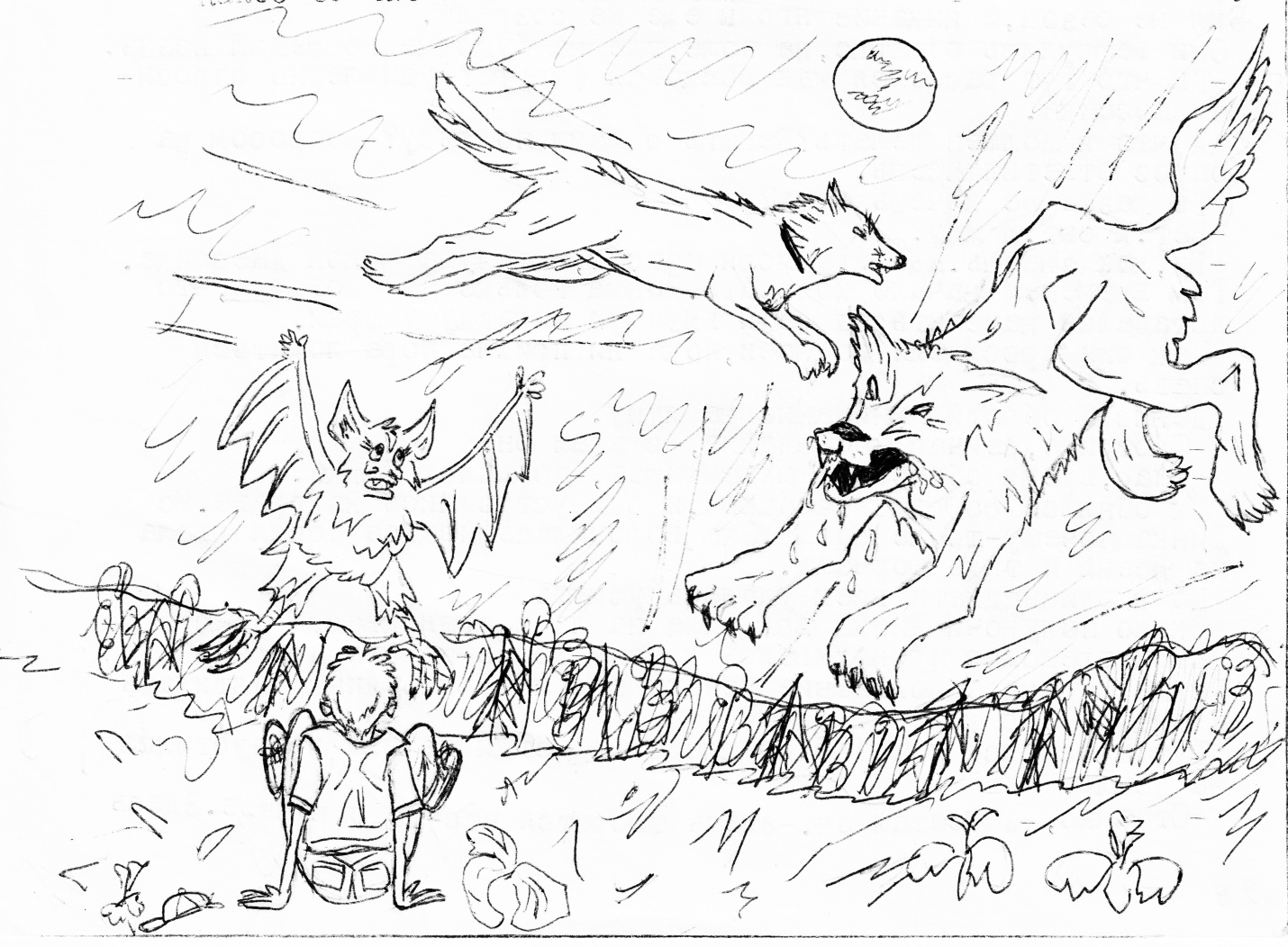 Оборотень, страшно сверкая глазами, раскрыл слюнявую пасть, полную острых зубов, и потянулся в прыжке когтистыми лапами к Генкиному лицу. Но вдруг что-то с молниеносной быстротой пронеслось у мальчика над головой и откинуло монстра в сторону. До Генки долетели лишь брызги слюны.