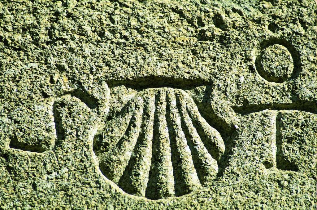 En estas regiones, territorios de paso de los peregrinos hacia Santiago, pero también zonas de gastronomía exquisita, la concha o vieira es un doble símbolo. La de color amarillo indica el recorrido del Camino. Y en la mesa, las vieiras son un plato que se prepara de muchas maneras, especialmente en Galicia. También las verá acuñadas en muchas joyas de azabache o de plata, o impresas en otros múltiples productos vendidos con este sello. No puede volver del viaje sin traerse una consigo. De la más trivial a la más cara... usted elige.
