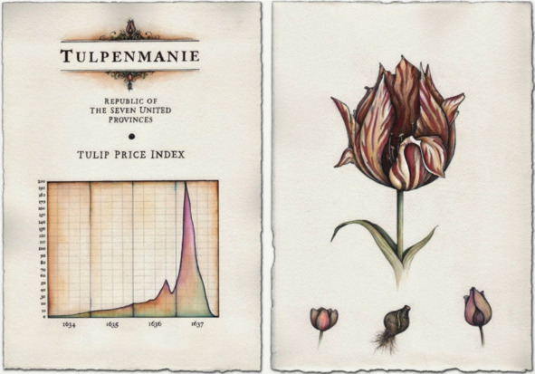 Один из самых знаменитых примеров инвестиционных пузырей – это «тюльпанный кризис», который произошел в Голландии в 1630-х годах. Тогда люди массово начали инвестировать в тюльпаны, которые стали объектом настоящего хайпа. Тюльпаны были новым и редким цветком в Европе и стали символом статуса и богатства. Спрос на тюльпаны был так высок, что цены на луковицы стали стремительно расти, достигая астрономических значений. В период между 1634 и 1637 годами цены на луковицы выросли более чем в 1000 раз. Одна из самых дорогих луковиц стоила столько же, сколько дом в Амстердаме.