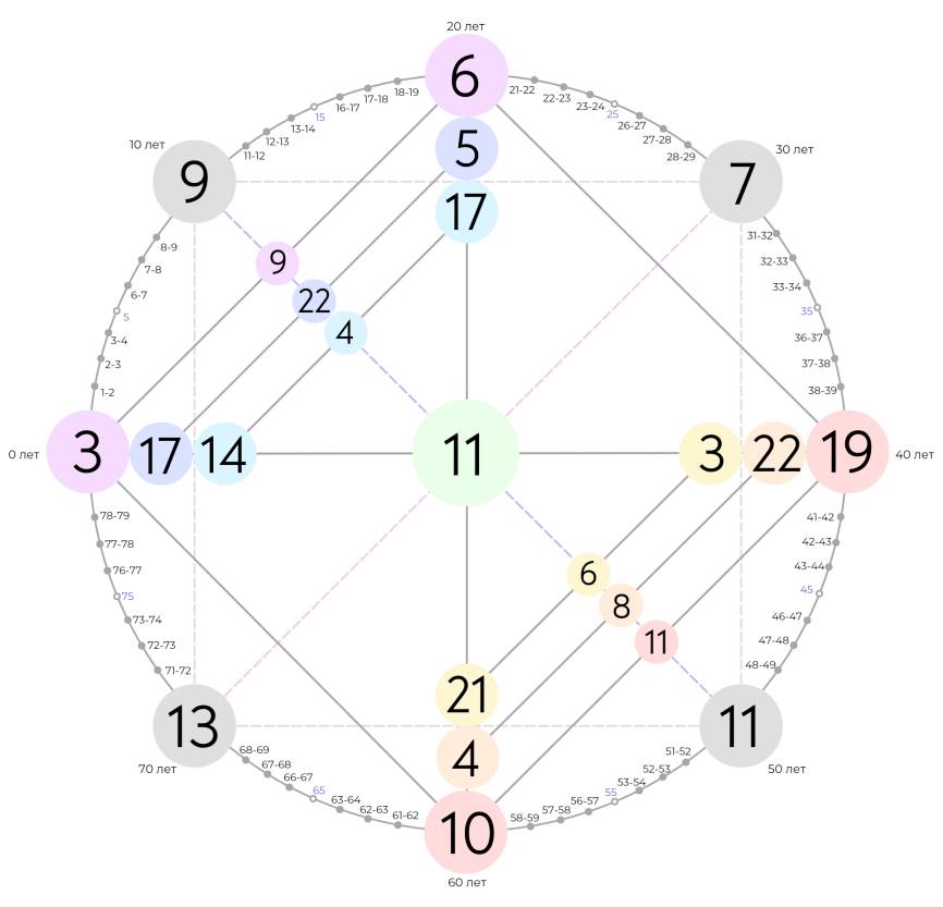 Также я учитываю энергии зоны предназначения и энергии по годам.