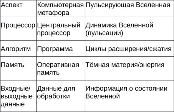 Если рассматривать Вселенную как информационную систему, то её динамика (пульсации) выполняет функцию обработки информации: