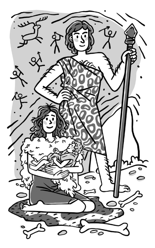 И в этот момент на сцену выходит отец. Партнер. Как новорожденному жизненно необходима мать, так же и древней женщине жизненно необходим древний мужчина, который обеспечит безопасность и принесет в пещеру еду. Сейчас появляются данные о том, что не только мужчины охотились, но и женщины, но точно не женщина с новорожденным. Здесь распределение ролей и функционала остается довольно очевидным.