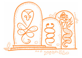 Змеи в страхе бежали в Паталу – подземное царство, лишенное солнечного света. Они освещали его с помощью нага-мани – драгоценных змеиных камней, которые появляются на капюшонах очень старых змей. Чем старше змея, тем больше капюшонов у нее могло быть, и на каждом из них со временем могли появиться эти драгоценные камни. Змеиный камень обладал регенерирующей силой, известной как сандживани. Эта сила просочилась в траву куша[5], на которой стоял горшок с амритой. Поэтому трава куша вырастает снова после того, как ее срывают. И именно поэтому она является неотъемлемой частью ритуалов. Змеи, ползающие по этой траве, также получили способность к регенерации – они могли сбрасывать старую кожу и заменять ее свежей, новой.