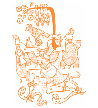 В оформлении обложки использована иллюстрация Garuda carrying Vishnu and Lakshmi. Gouache drawing.