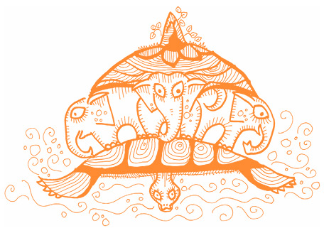 Черепаха и слоны, образующие основу, фундамент, на котором стоит земля