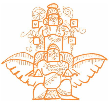 ПРИКЛЮЧЕНИЯ ГАРУДЫВ эпоху вед, расцвет которой в долине Ганга случился примерно три тысячи лет назад, Гаруда был известен как Супарна и олицетворял собой мантры, которые, подобно соколам, поднимались ввысь и приносили людям милость небесных богов. К пураническим временам, то есть около полутора тысяч лет назад, Гаруда преобразился в могучего орла, сына риши Кашьяпы и его жены Винаты. Царь всех птиц и вахана (то есть ездовое существо для божества) бога Вишну, который защищает мир и поддерживает в нем баланс, Гаруда был страшным врагом нагов (змееподобных существ). Это предание распространилось даже в юго-восточной Азии.
