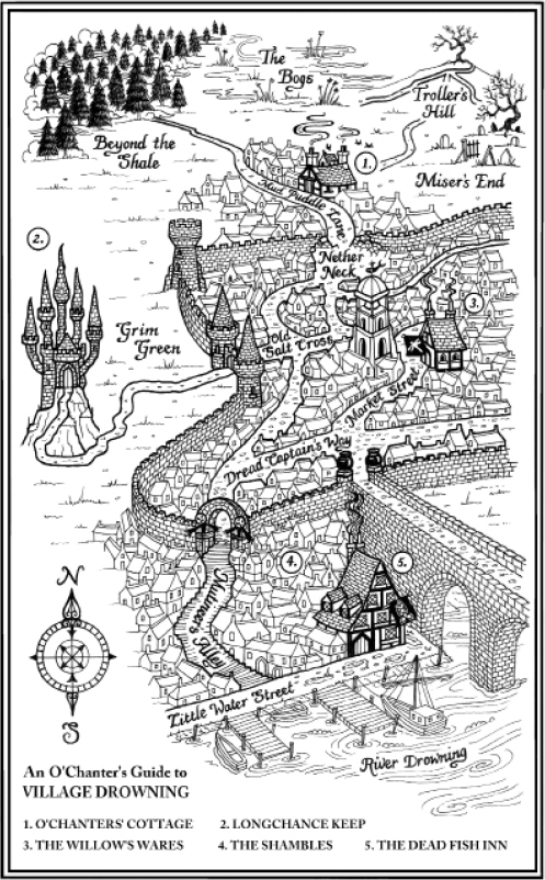 As if waiting for just such an introduction, the poet in question pulled his ample belly on to the far side of the roof. He was indeed angry – for a variety of reasons, Rye supposed. For one, nobody paid much attention to poets any more. Most villagers wanted to hear words sung over harps or stomped out by actors in tights and feathered caps. Plus, as far as Rye could tell, books weren’t exactly flying off the shelves in Drowning, its residents more partial to fishing, fighting and fortune hunting. In fact, the Earl who oversaw the affairs of Drowning had not only banned women and girls from reading, but went so far as to outlaw certain books altogether. None was more illicit than the book Rye now pressed close to her body, Tam’s Tome of Drowning Mouth Fibs, Volume II – an obscure history textbook that had been widely ignored until the Earl described it as a vile collection of scandalous accusations, dangerous untruths and outright lies. Even an eleven-year-old could work out that meant there must be some serious truth to it.