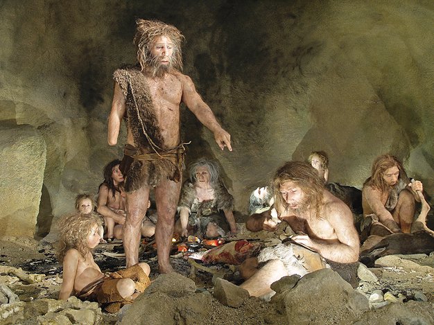 Воссоздание сообщества неандертальцев на основе археологических раскопок в Крапине, Хорватия. (© Музей крапинских неандертальцев, Хорватия)