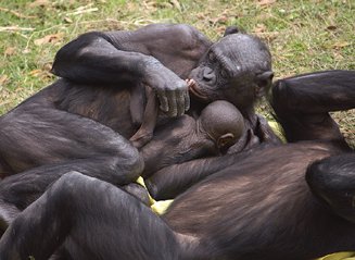 Бонобо – социальные животные. В отличие от шимпанзе, самки и самцы бонобо делят еду между собой вне зависимости от пола. Более того, отношения между женскими особями этого вида лучше, чем у шимпанзе.