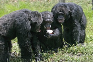 ШимпанзеОбыкновенные шимпанзе обитают маленькими сообществами в тропических лесах Африки. Как правило, их сообщества насчитывают от 20 до 150 особей. Впрочем, бóльшую часть времени шимпанзе проводят, путешествуя небольшими временными группами, которые состоят из нескольких особей любого пола и возраста. И самцы, и самки иногда путешествуют в одиночку. Шимпанзе, как и люди, строят сложные социальные отношения. Кроме того, они уделяют много времени чистке друг друга. В сообществах шимпанзе это важный способ создания социальных союзов.