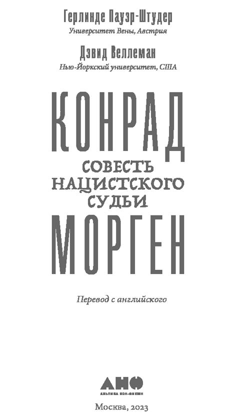 Мы благодарим Рафаэля Гросса и Вернера Конитцера из Института Фрица Бауэра во Франкфурте-на-Майне за то, что они обратили наше внимание на дело Конрада Моргена. Эссе Рафаэля Гросса о Конраде Моргене побудило нас к первым размышлениям об этом деле; Вернер Конитцер давал советы на многих стадиях проекта и делился комментариями по поводу черновика рукописи. Другие историки, которые предложили свои рекомендации, – это Норберт Фрай, Иэн Кершоу, Барбара Швиндт, Сибилла Штайнбахер и Ребекка Витман.