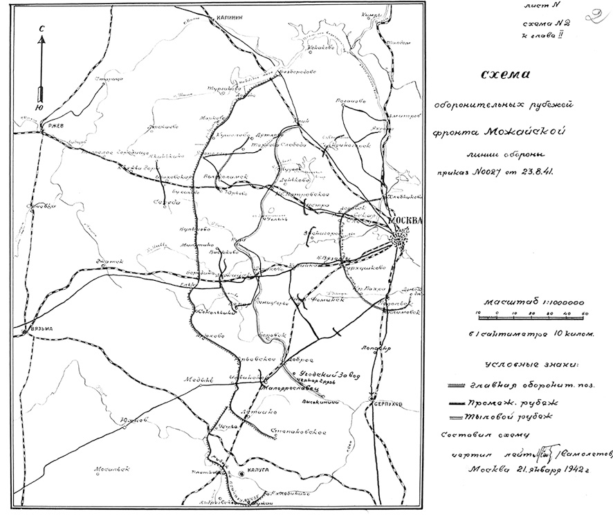 Схема оборонительных рубежей фронта Можайской линии обороны (схема 21 января 1942 г.).
