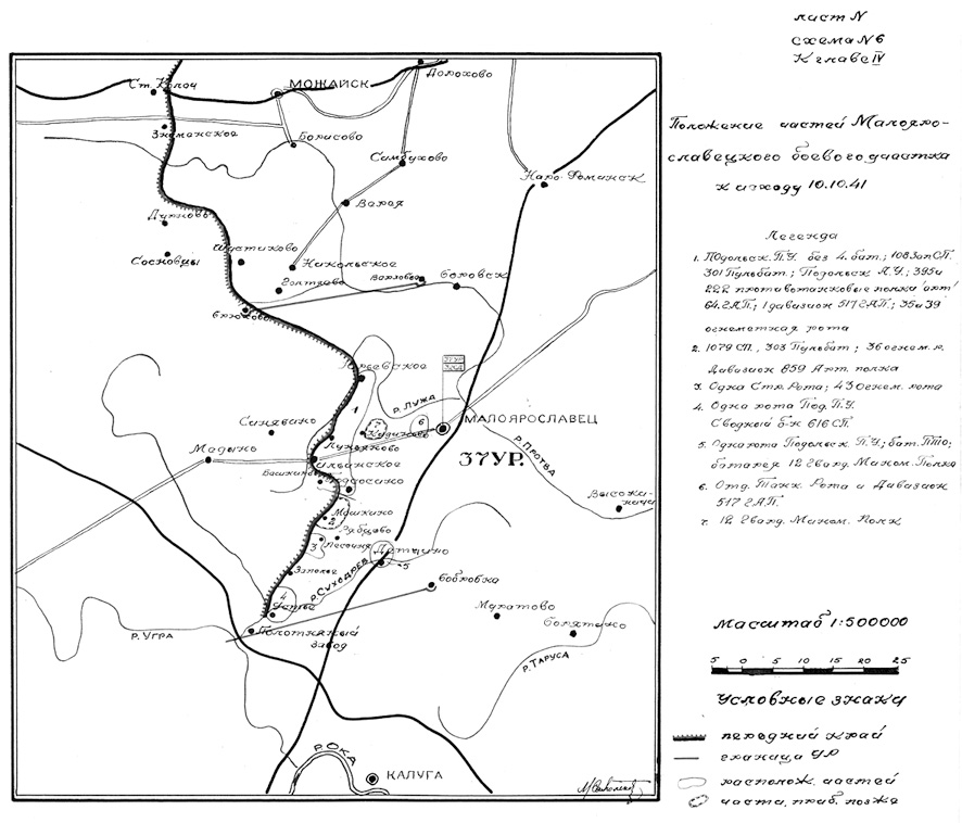 Положение частей Малоярославецкого боевого участка к исходу 10 октября 1941 г.