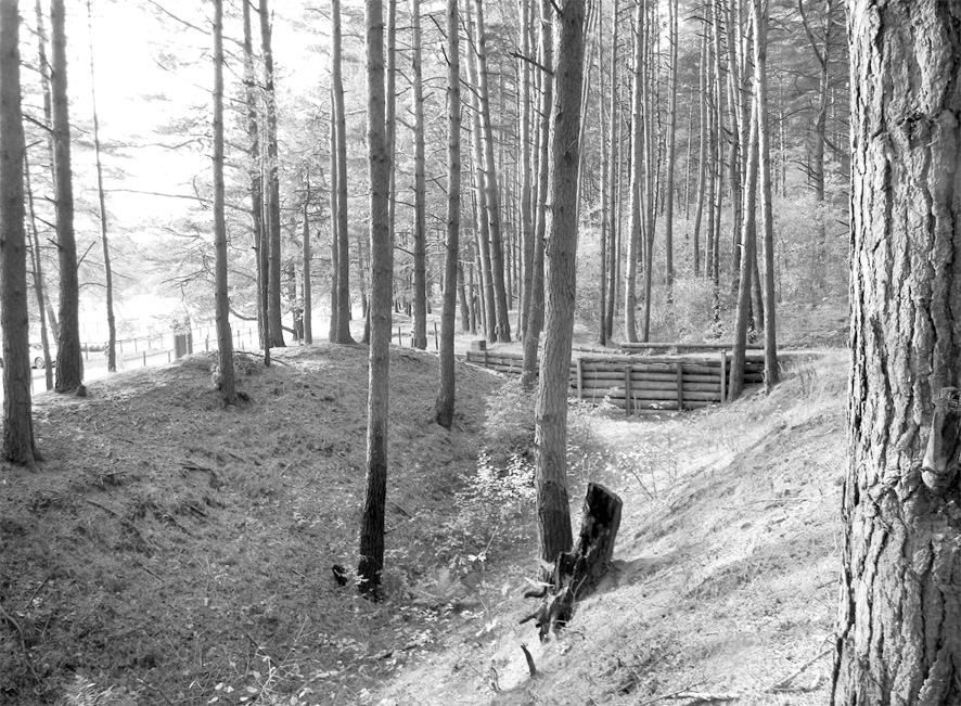 Остатки противотанковых рвов на левом берегу реки Протвы у с. Черная Грязь. Фото автора.