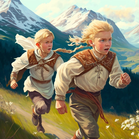 Отдохнёте здесь пять дней, Ждём мы гномью стражу,В горы тайные пути, Под землёй покажут.Дни проходят чередой, Время наступает,И из чащи, из лесной, Гномы выезжают.По тропе лесной несут, Маленькие кони,Мчатся будто две стрелы, Словно от погони.Братья вышли на крыльцо, И встречают гномов,Агни машет из окна, Приглашает в дом их.Кони встали у крыльца, седоки слезают,Привязали удила, шелома снимают.Оба ростом с тот аршин, широки плечами,А одежда вся в пыли, день и ночь скакали.