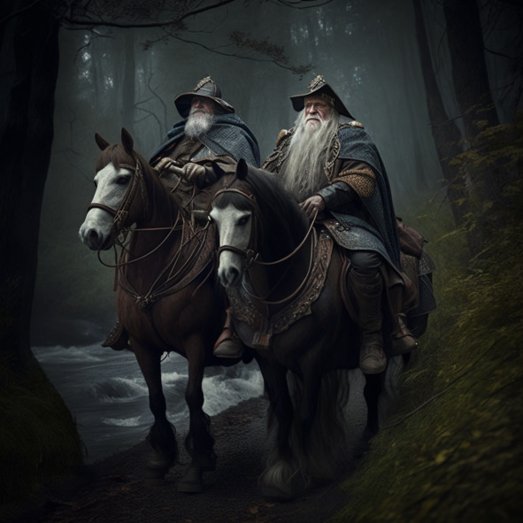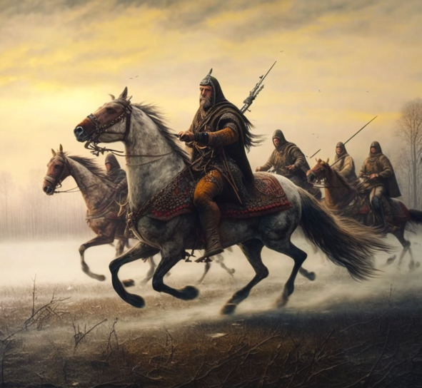 Чаща леса, звон ручья, стук копыт тревожныйМчатся кони сквозь туман, с шумом невозможным.Сокол с Филином парят, над отрядом конным,Что несётся сквозь леса, до отрогов горных.