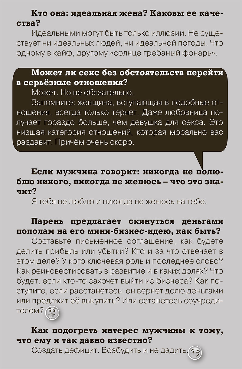 Начнем с момента знакомства и первого свидания. Конечно же, если вам самой очень хочется секса, и не так важны последующие отношения, эту главу можно не читать. Но потом не задавайтесь вопросами, почему вас бросают или пропадают наутро и почему он больше не звонит. Или как быть, если вы, сами того не зная, оказались в роли любовницы. И почему вы до сих пор одна?!