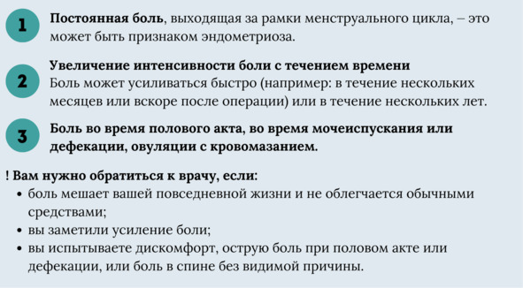 Давайте еще раз посмотрим на основные симптомы эндометриоза: