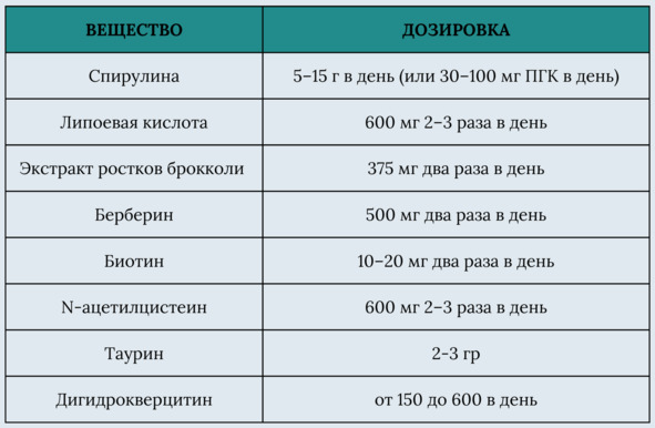 Также доказанным действием обладают следующие вещества [25] (см. табл. на с. 42).