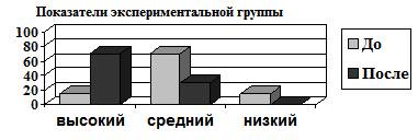 Проанализировав данные сравнительных диаграмм можно проследить изменения до и после проведенных игровых занятий, в среднем и высоком уровне развития мотивационной готовности испытуемых экспериментальной и контрольной групп.